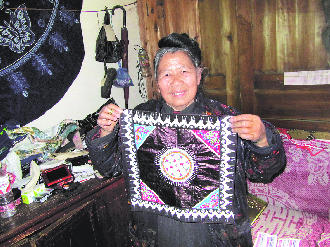 14日下午,记者在黎平肇兴侗寨六洞绣品店见到了当地绣娘陆香花,就在当天早上,陆香花和该县各乡镇共60多位绣娘,在肇兴侗族文化展示中心为总理展示了自己的作品和技艺。
