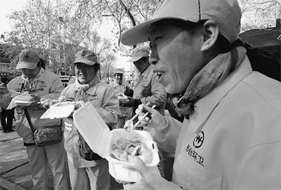 大年三十,河北省邢台市数百名环卫工人坚守一线,市环卫处为他们订制了千余盒爱心水饺。黄 涛 郭书河摄影报道