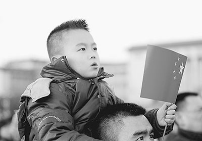 2014年3月5日清晨,来自河北邢台的小朋友在北京天安门广场观看升国旗仪式。许丛军摄