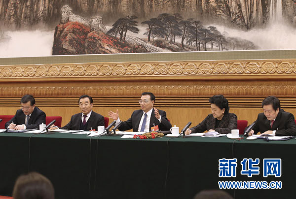 3月7日,中共中央政治局常委、国务院总理李克强参加十二届全国人大三次会议江苏代表团的审议。 新华社记者马占成摄