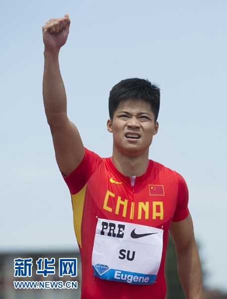新华网美国尤金5月30日电(记者李博闻)在30日进行的2015国际田联钻石联赛尤金站男子100米比赛中,苏炳添以9秒99获得第三,成为首个跑进10秒大关的中国“飞人”。在现场观战的前跨栏奥运冠军刘翔表示,这具有里程碑的意义。