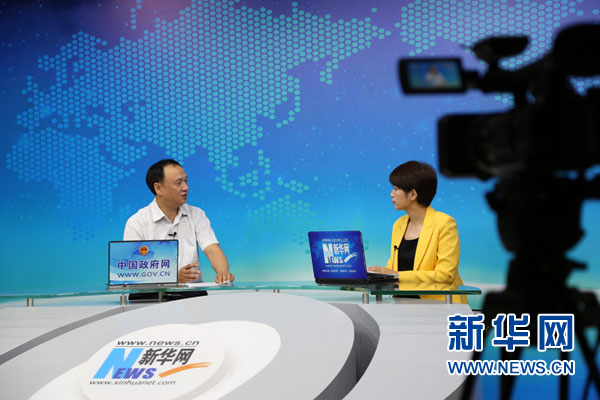6月18日,教育部教师工作司司长许涛做客新华网解读《乡村教师支持计划(2015- 2020年)》。新华网 夏添 摄