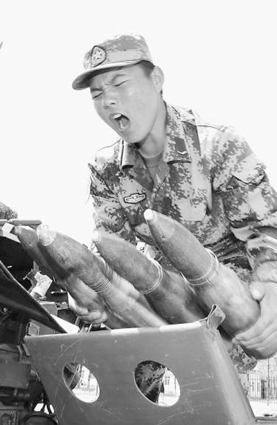 训练场上见样子,五炮手乔天骄进行压弹操作。