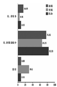图3 部属、省属、民办高校在校生进入跨国公司实习情况