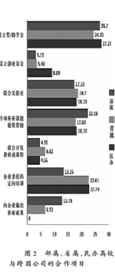 图2 部属、省属、民办高校与跨国公司的合作项目