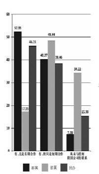从问卷统计中也发现,部属高校以及民办高校和跨国公司以长期合作为主,并且与跨国公司合作比例较高;省属高校和跨国公司以短期合作为主,且没有和跨国公司合作的比例较高。跨国公司与我国部属高校以及民办类高校中的独立学院类和高职类高校同跨国有长期合作的比例比省属高校要高(见图1)。和跨国公司有长期合作的高校基本以大学为主,企业资助和企业与大学共同研究开发两种方式与跨国公司开展合作。
