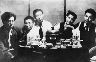 1937年,台湾屏东佳冬萧家后人萧道应(左一)与挚友聚餐商讨筹组医疗服务团,返回大陆参加抗日战争,其曾祖父萧光明是1895年组织乡勇抗击入侵日寇的客家领袖。新华社发