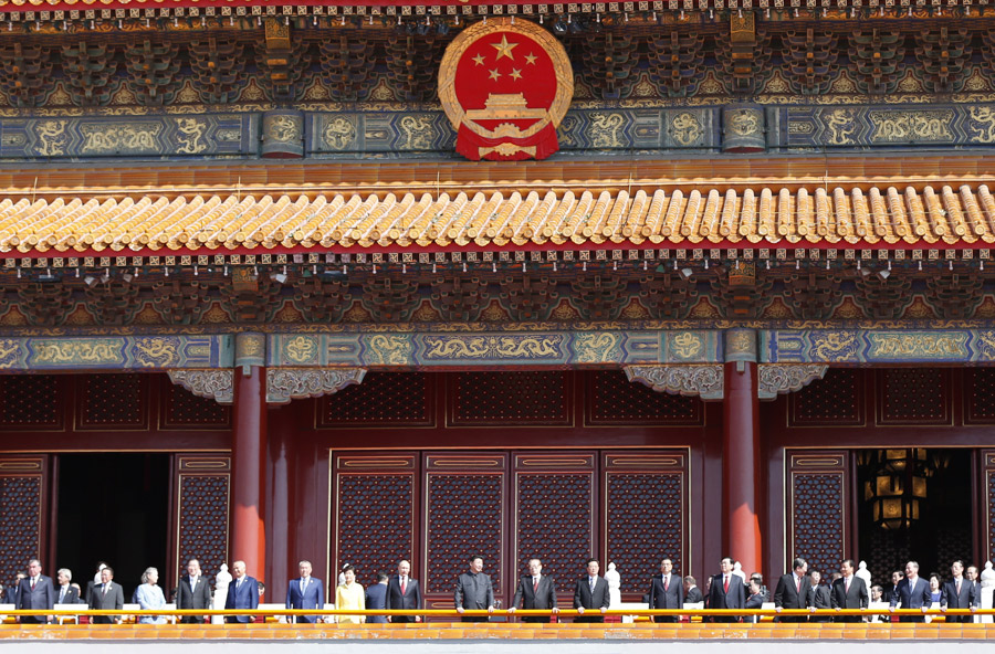 在京重要外宾,外方代表团成员代表,外军代表团,各国驻华使节、武官和国际组织代表,苏联红军、美国飞虎队等为中国抗战胜利作出贡献的国际友人或其遗属代表,外国老专家或其遗属代表等2000多人应邀出席大会。