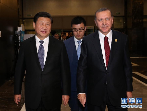 埃尔多安表示,欢迎习近平主席来土耳其出席二十国集团峰会。土中两国保持密切高层和各领域交往,有助于增进相互理解、促成共识,对推动两国关系深入发展十分重要。土方高度重视对华关系,愿在相互尊重基础上,继续同中方深化政治、经济、能源、文化、安全、旅游等各领域合作,并同中方一道努力,提高两国贸易水平。土方愿积极参加“一带一路”框架下合作,欢迎中国企业加大对土耳其基础设施等领域投资。土方决不允许任何势力在土从事反华和破坏土中关系的活动。