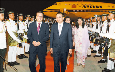 李克强指出,中马睦邻友好,情深谊长。这是我就任中国国务院总理后首次正式访问马来西亚。我期待同马方领导人就全方位深化中马全面战略伙伴关系深入交换意见,将中马互利务实合作提升至新的水平,更好造福两国人民,助力区域合作取得新进展。