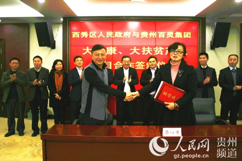 图为1月13日 西秀区人民政府与贵州百灵集团签定大健康大扶贫产业项目合作签约仪式.