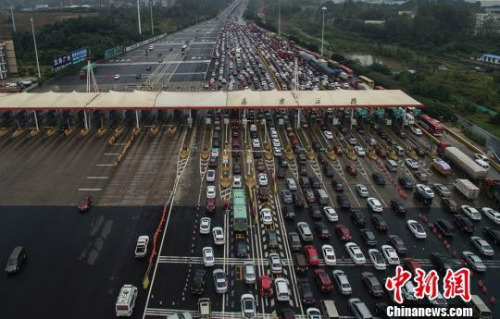 资料图:大批车辆在南京长江二桥高速上缓慢通行。 泱波 摄