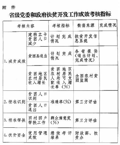 《省级党委和政府扶贫开发工作成效考核办法》全文如下。