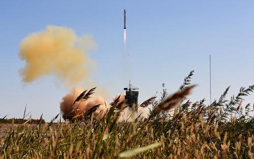 2015年10月7日12时13分,我国在酒泉卫星发射中心用长征二号丁运载火箭成功将1组“吉林一号”商业卫星发射升空。(赵鹏摄/新华社)