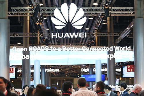 2016年2月,华为在西班牙巴塞罗那世界移动通信大会的展台。华为在此次展会上发布了旗下首款二合一笔记本电脑。