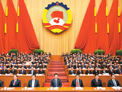 党和国家领导人习近平、李克强、张德江、刘云山、王岐山、张高丽等在主席台就座,祝贺大会召开。