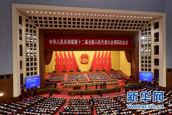 3月9日,十二届全国人大四次会议在北京人民大会堂举行第二次全体会议。 新华社记者 刘军喜 摄