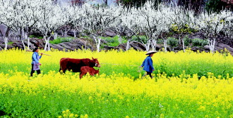 沿河自治县南庄生态旅游景区李花似皑皑白雪,李树下的油菜花泛着金黄。近年,该县以现代农业示范园区南庄为中轴,发展空心李6.1万余亩,每年接待游客50多万人次,实现旅游收入1.3亿元。 田茂昌 摄(贵景网发)