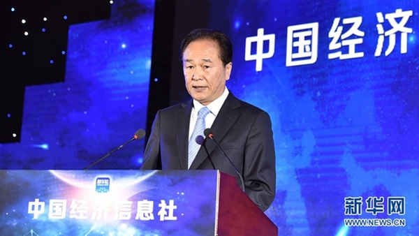 4月26日,新华通讯社旗下的中国经济信息社重组启航。图为新华通讯社社长蔡名照致辞。 新华社记者 李鑫 摄