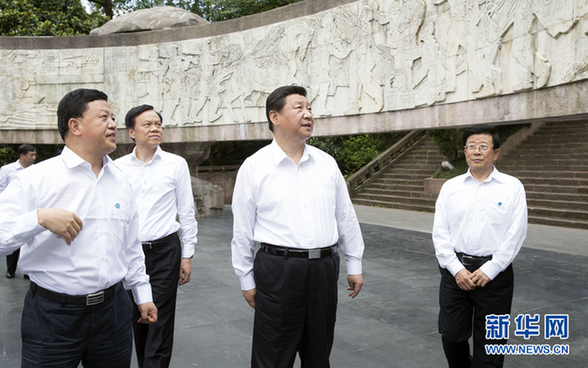 2015年6月16日至18日,中共中央总书记、国家主席、中央军委主席习近平在贵州调研。这是16日上午,习近平在遵义市红军山烈士陵园瞻仰红军烈士纪念浮雕。 新华社记者黄敬文摄