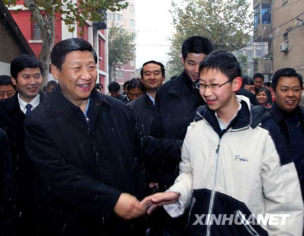 2009年11月,时任中共中央政治局常委、中央书记处书记、国家副主席习近平在陕西调研时强调结合新的实际弘扬延安精神。这是11月15日习近平在西安市雁塔区红专南路社区考察调研时,与当地居民亲切交谈。新华社记者兰红光摄