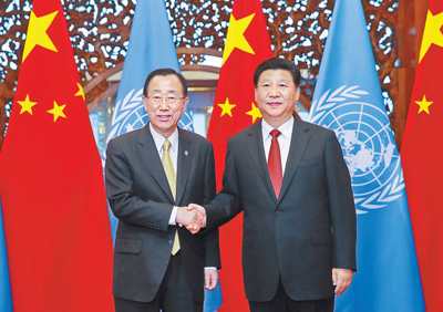 7月7日,国家主席习近平在北京钓鱼台国宾馆会见联合国秘书长潘基文。