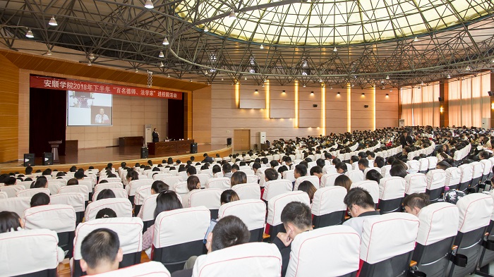为贯彻落实中共贵州省委办公厅贵州省政府办公厅印发的《关于进一步加强和改进新形势下全省高校宣传思想工作的实施意见》的通知精神和省教育厅、省文明办、省民政厅、省司法厅、省法治宣传教育工作领导小组办公室下发的《关于开展“百名德师、法学家”进校园的通知》精神,安顺学院开展了2018年下半年“百名德师、法学家”进校园活动。刘钢律师的“不负似水年华——青年大学生成长法治教育”专题报告会是该活动的其中一场。