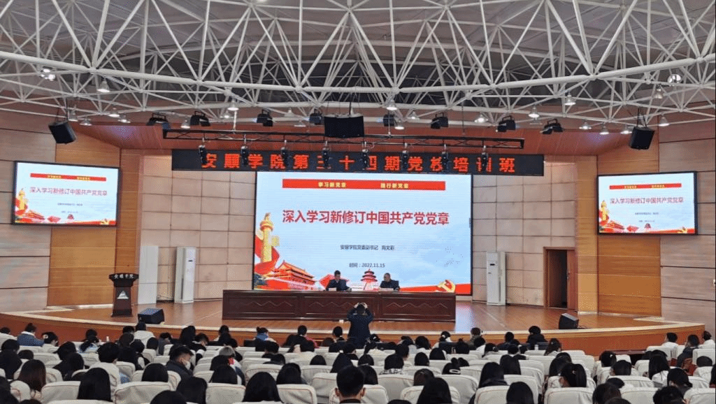 2022年11月15日下午,安顺学院党委副书记陶文彩以“深入学习新修订《中国共产党章程》”为题为34期党校学员上党课。