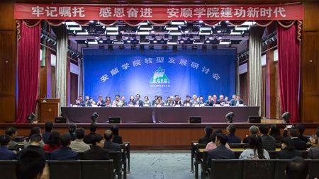 2018年9月27日上午,安顺学院转型发展研讨会在学校礼堂隆重召开。市政协主席杨华昌、市人民政府副市长周丽莉出席会议。省政协原副主席王惠业,贵州大学党委书记李建军,贵州财经大学校长刘雷,贵州师范学院纪委书记王之瑞,安顺职业技术学院党委书记、市教育局局长许志,贵州省广播电视大学原校长杨和,省委组织部原部委委员、远教中心主任宋洪宪,省民政厅原副厅长甄燕驰,贵州民族大学原副校长范允龙,贵州民族大学原纪委书记姜再阳,安顺师专原党委书记向太阳,安顺师专原党委书记屠声凤等四十余名领导和嘉宾出席会议。安顺学院党委书记罗荣彬、院长吴次南、党委副书记陶文彩、副院长顾明宇、副院长令狐荣涛、纪委书记马力及副处级以上领导干部、600余名师生代表参加会议。会议由安顺学院党委副书记陶文彩主持。