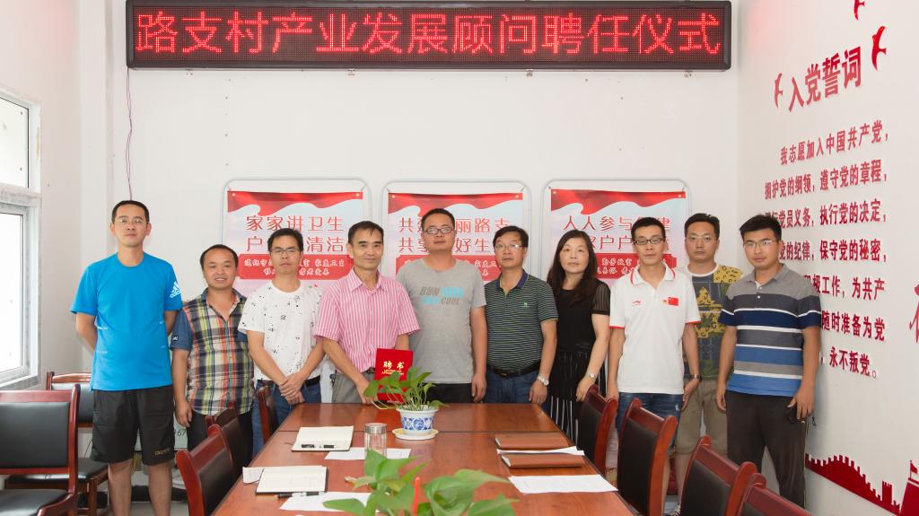 在路支村委会办公室,举行了聘请钱晓刚教授为路支村产业发展顾问的聘任仪式,村主任张正星颁发了聘书。
