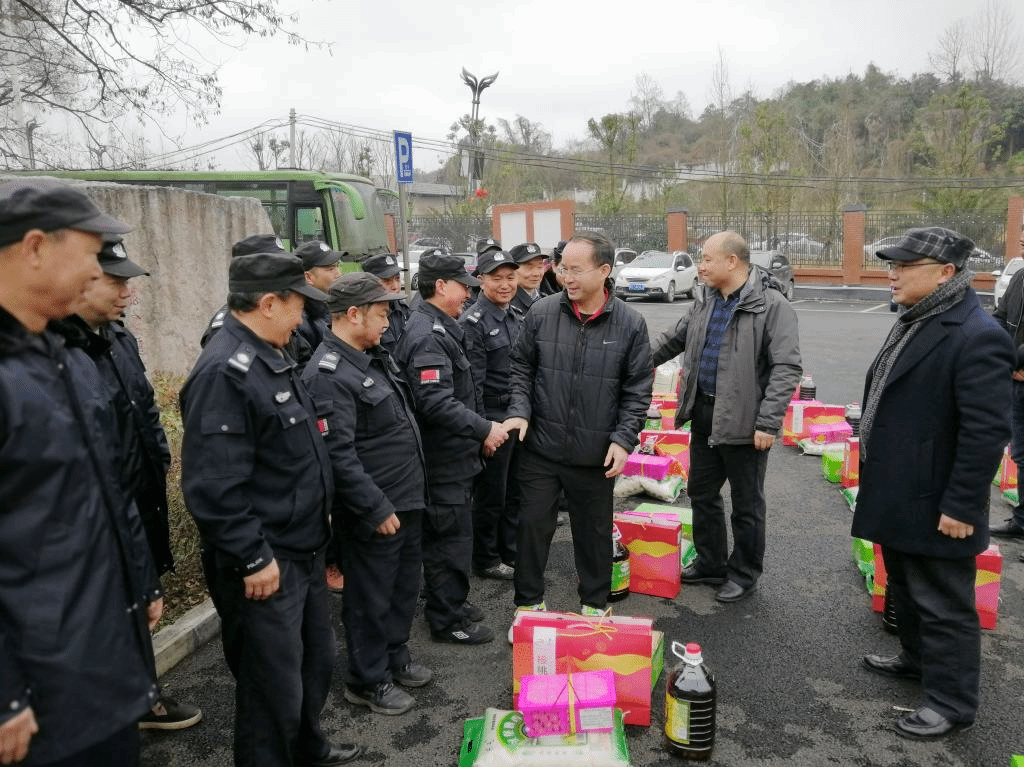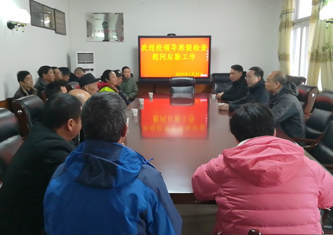2019年1月31日上午,校党委书记罗荣彬、副校长郭本华代表学校党委和行政慰问春节前在一线值班的后勤处、保卫处及安保公司工作人员。