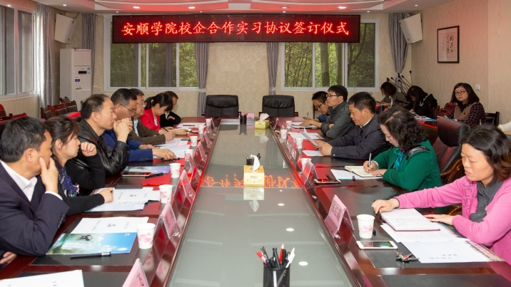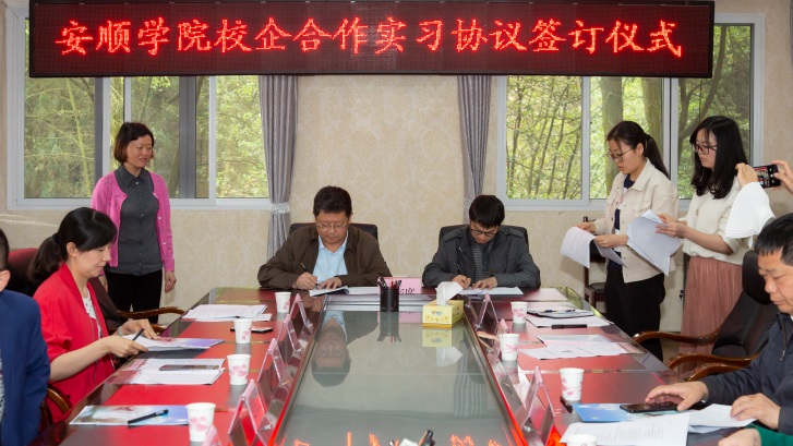 为提升安顺学院食品质量与安全专业应用型人才培养质量,拓宽学生实习、实践教学渠道,满足地方行业企业对相关专业的人才需求,2019年4月12日,安顺学院化学化工学院与安顺市食品药品监督检测所、安顺市质量技术监督检测所、贵州贵国王实业有限公司等6个实习接收单位在行政楼二楼会议室举行实习协议签订仪式。安顺学院党委副书记陶文彩、安顺市食品药品监督检测所所长孙刚、安顺市质量技术监督检测所副所长刘萍、贵州贵果王实业有限公司董事长赵方云、贵州云上刺梨花科技有限公司董事长张海、贵州天赐贵宝食品有限公司董事长闫福泉、贵州梓涵能源集团食品有限公司总经理黄林平、安顺学院化学化工学院主要负责人及食品质量与安全专业教师代表参加签订仪式。