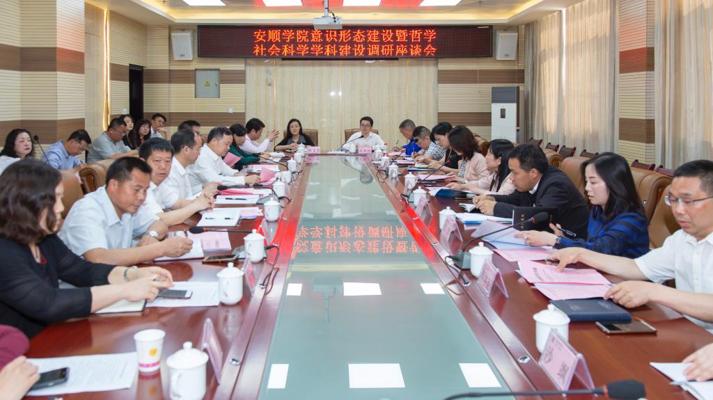 罗荣彬书记从安顺学院基本情况、安顺学院意识形态建设暨哲学社会科学学科建设情况、存在的问题及下一步工作打算等方面,向调研组汇报了安顺学院意识形态建设暨哲学社会科学学科建设情况。