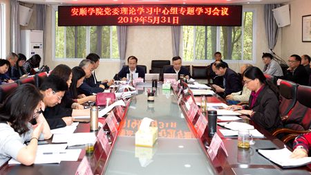 2019年5月31日,安顺学院党委书记罗荣彬主持召开安顺学院党委理论学习中心组专题学习会议,传达学习习近平总书记为第五批全国干部学习培训教材所作《序言》,传达学习《新时代 新气象 新作为——贵州发展2018》,传达学习《中国共产党重大事项请示报告条例》和《中国共产党党组工作条例》,传达学习《习近平新时代中国特色社会主义思想三十讲》第八、九、十、十一讲。