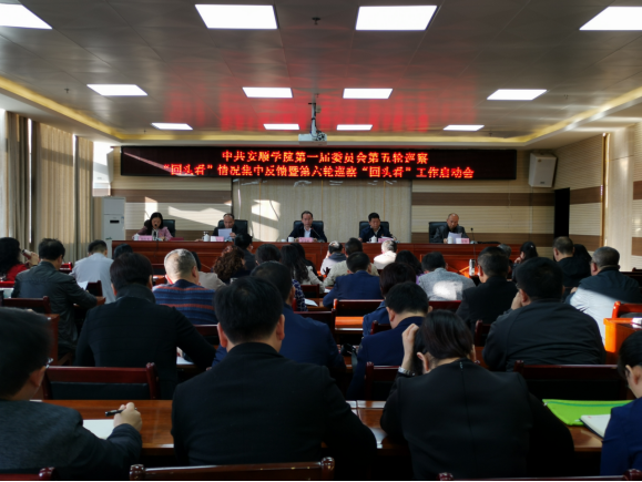 会上,蔡红英同志就安顺学院第一届委员会第五轮巡察“回头看”情况进行通报,陶文彩同志对第六轮巡察“回头看”进行安排部署。