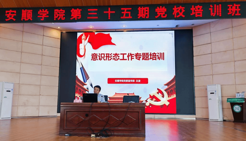5月24日下午,安顺学院党委宣传部副部长白波为党校培训班学员进行意识形态工作专题授课,培训班共300余名学员接受培训。