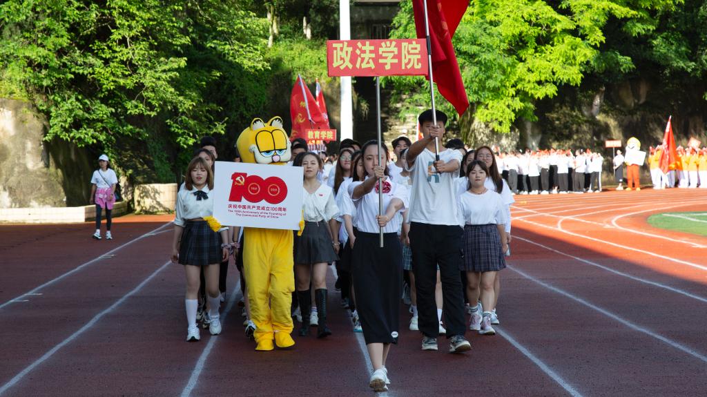 热情大方、活力四射的《啦啦操》表演和蕴含着传统体育文化丰富底蕴的《健身气功八段锦》表演点燃全场。最后,全校唱响《没有共产党就没有新中国》,以一句句歌词诠释青年学子的爱国之心,共同抒发爱国之情。