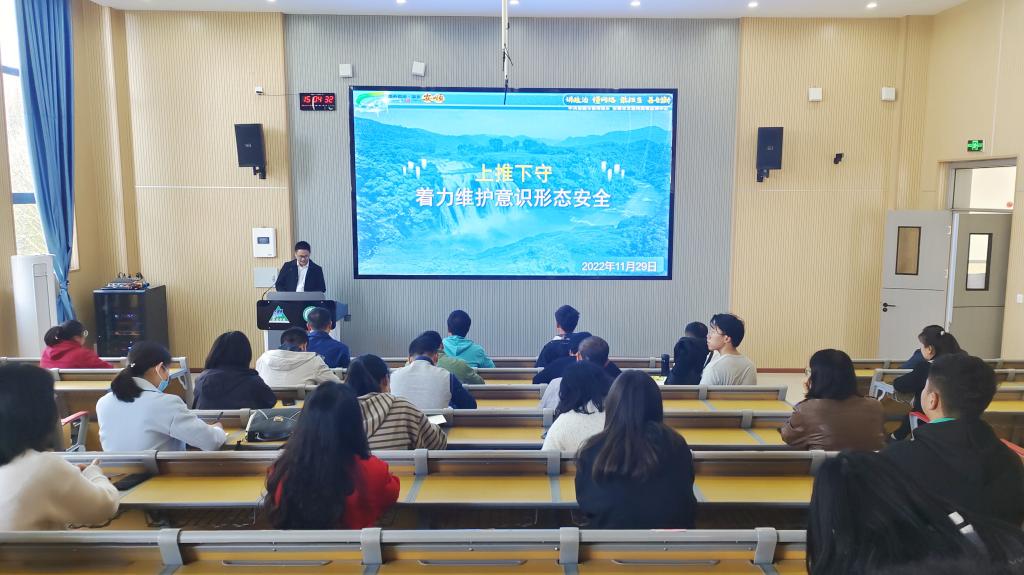 为贯彻落实党的二十大精神,进一步加强网络舆情管理和舆论引导工作,2022年11月29日下午,安顺学院在安道楼102教室举办2022年下半年网络评论员业务培训会。中共安顺市委网信办、安顺市互联网舆情监测中心副主任董贤江作专题培训,各二级学院、职能部门网络评论员、安全信息员、网站管理员参加培训,安顺学院党委宣传部副部长白波主持。