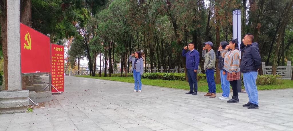 宣传部党支部全体党员在烈士墓前表达哀思,深切缅怀,在党旗下重温入党誓词,庄严宣誓,并向革命先烈们鞠躬默哀,了解革命先烈们的生平和光辉事迹,深切感悟革命先辈信念坚定、赤胆忠诚、不负人民的崇高精神。