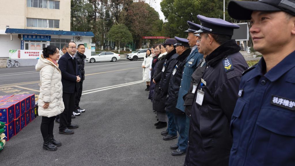 新春佳节来临之际,2024年2月9日上午,安顺学院党委书记罗荣彬看望慰问寒假坚守在岗位上的后勤处、保卫处教职工。