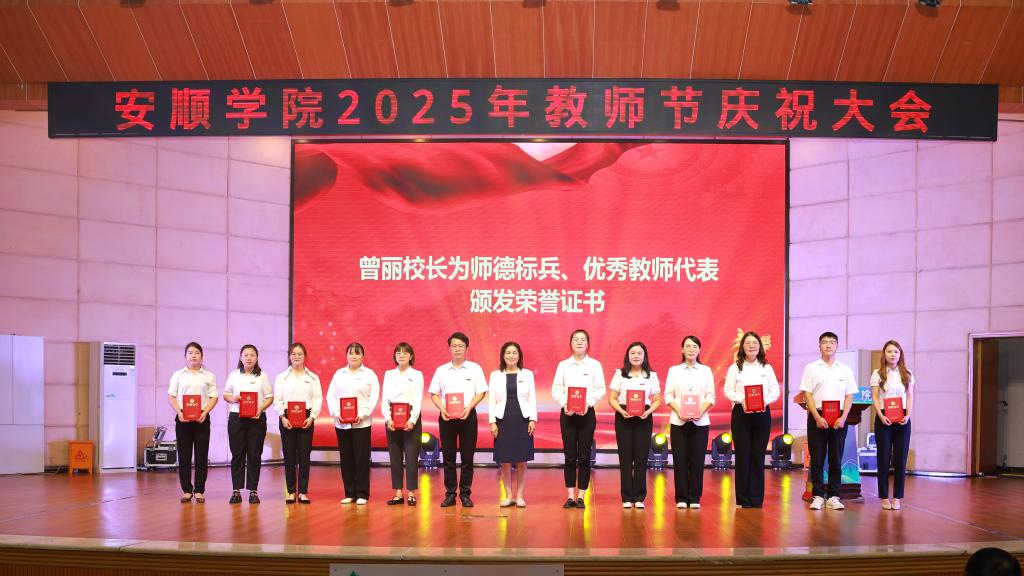 为表彰先进,弘扬教育家精神,加强教师队伍建设,激励教师的光荣感、责任感和使命感,9月10日下午,安顺学院2025年教师节庆祝大会在学术报告厅举行。校党委委员、校领导,全体教职工、学生代表参加。庆祝大会由安顺学院党委委员、副校长殷红敏主持。