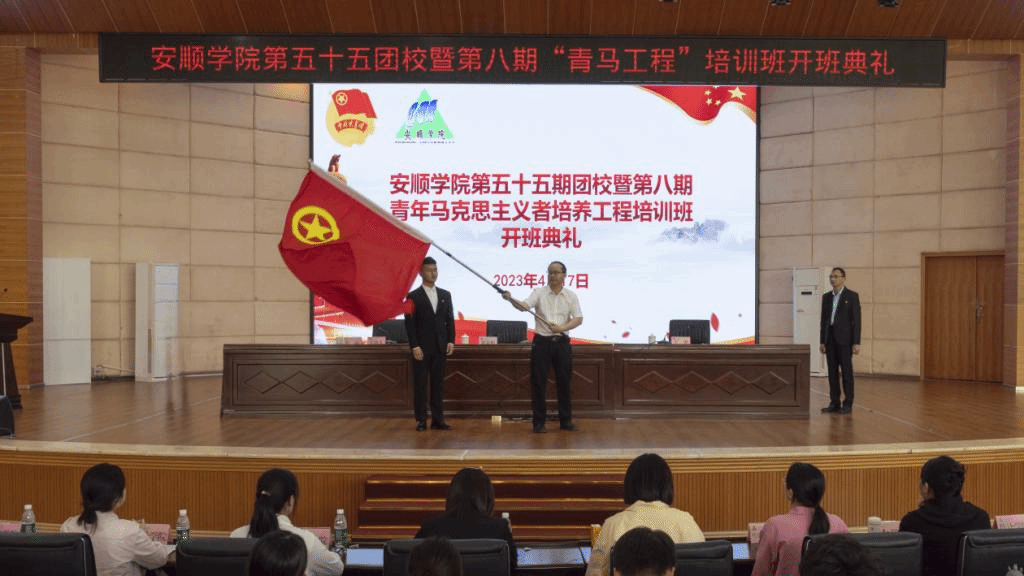 2023年4月17日下午,安顺学院第五十五期团校暨第八期“青马工程”培训班开班典礼和专题讲座在学术报告厅举行。安顺学院党委书记罗荣彬,校团委全体教职工,第五十五期团校各学习班班长,团校各学习班学员和第八期“青马工程”培训班学员参加开班典礼。开班典礼由校团委副书记张丽主持。