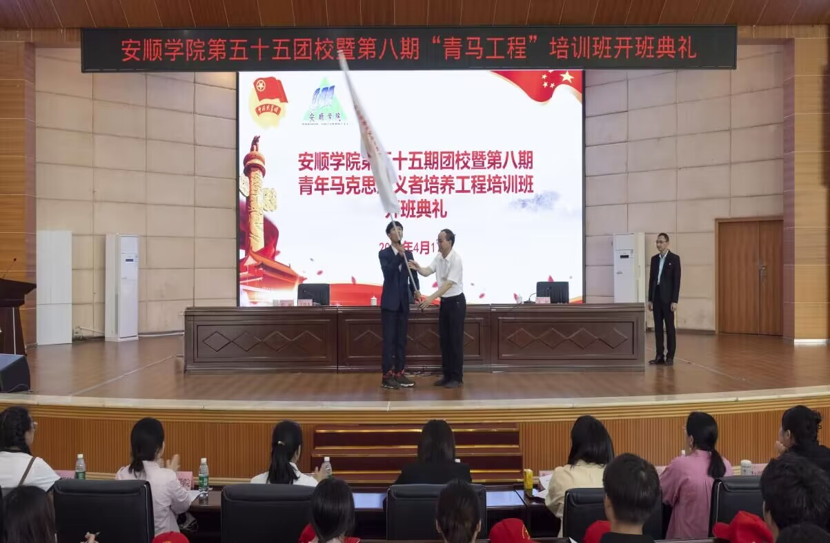 安顺学院党委书记罗荣彬为第八期“青马工程”培训班授旗
