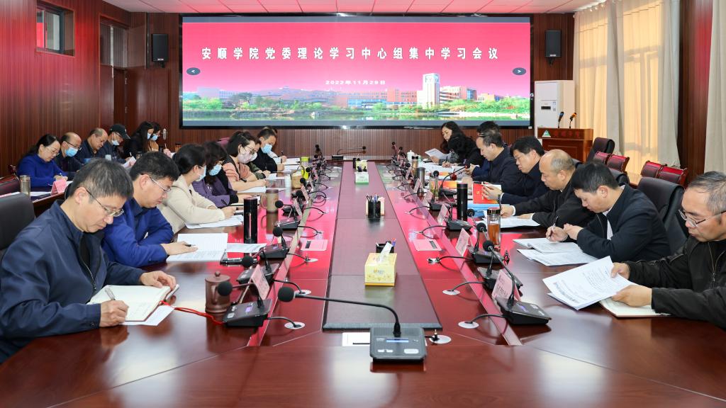 2022年11月29日上午,安顺学院召开党委理论学习中心组集中学习会议,校领导班子成员及各职能部门负责人,各基层党委书记参加学习。安顺学院党委书记罗荣彬主持学习并提出要求。