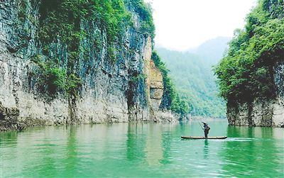 清溪峡上,撑一叶轻舟缓行,湖水似碧,绝崖如画,鸳鸯同戏,飞鸟高歌;双河洞中,赏玉笋奇石各异,曲石花莹,水润石溶,百洞相接,参差峥嵘;大裂缝下,听地下河水奔涌,缝隙九曲,且伫且行,起起伏伏,驰想纵横……