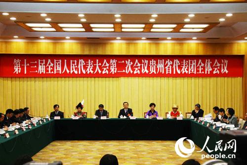 贵州省代表团举行全体会议。栗翘楚摄