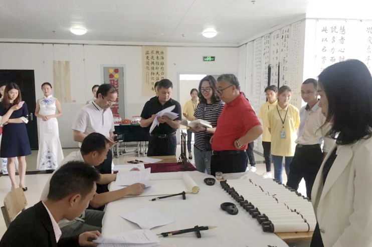 为响应“多彩校园·闪亮青春”第十三届全省大学生校园文化月活动之全省高校师生学习《习近平用典》书法研习活动学习号召,推动我校师生学习中华典故,继承和弘扬中华优秀传统文化,2018年6月27日,由安顺学院主办、共青团安顺学院委员会承办的师生学习《习近平用典》书法研习活动在特教大楼艺术空间举行。安顺学院党委书记罗荣彬,副院长令狐荣涛,纪委书记马力,各学院团总支书记,艺术学院书法教师和专业指导老师参加活动。