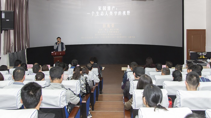 4月27日上午,厦门大学人类学研究所所长、人文与艺术学部委员、旅游人类学研究中心主任、博士生导师,中国人类学学会副秘书长,中国文学人类学学会副会长,中国艺术人类学研究会副会长彭兆荣在安顺学院旅游实训室为师生作题为《家园遗产的生态人类学研究》的学术讲座。