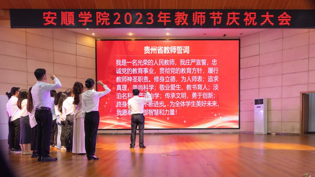 百年大计,教育为本,教育大计,教师为本。2023年9月8日下午,安顺学院在学术报告厅隆重召开“躬耕教坛 强国有我”教师节庆祝大会,向我校教师和教育工作者致以崇高的敬意。安顺学院全体校领导,正副处级干部,2023年教师节表彰优秀教师、优秀教育工作者,2023年新入职教师,教龄30周年教师,2022年至今光荣退休教师,部分师生代表参加会议。大会由安顺学院党委委员、副校长殷红敏主持。