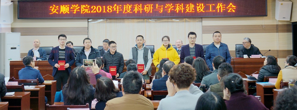 陶文彩副书记宣读了安顺学院2017年度科研立项奖励表彰文件;王芳恒副院长宣读了安顺学院2017年度科研成果获奖奖励表彰文件;令狐荣涛副院长宣读了安顺学院2017年度科研获奖成果奖励表彰文件;郭本华副院长宣读了安顺学院2017年度科研绩效考核优秀单位及优秀信息员表彰文件。学校领导为科研奖励获奖代表、科研绩效考核优秀单位代表、优秀科研信息员颁奖。